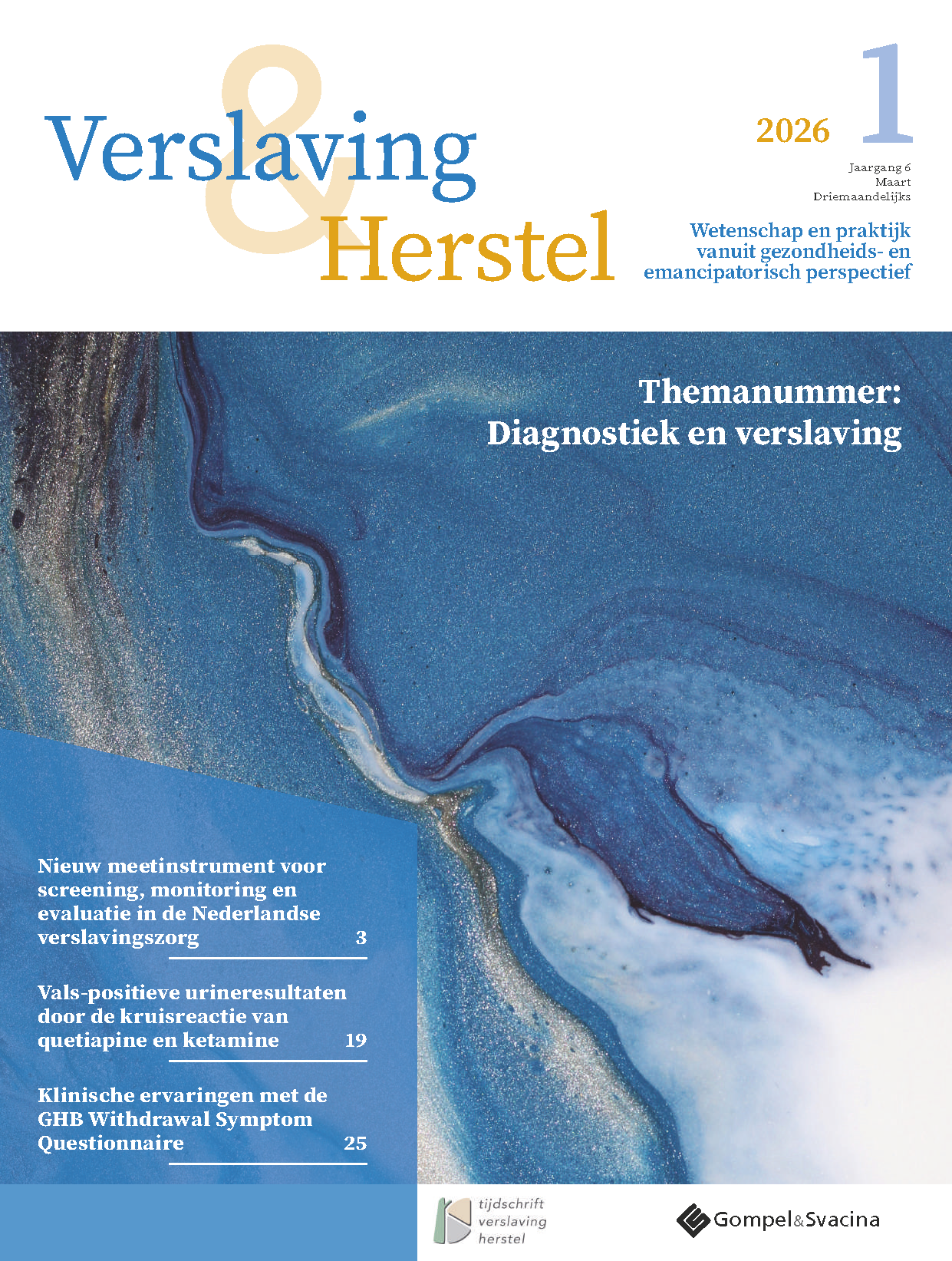 Een stoornis in het gebruik van gamma-hydroxyboterzuur (GHB) kan gepaard gaan met een ernstig onthoudingssyndroom. Daarom dient de ontwenning nauwkeurig te worden gemonitord tijdens detoxificatie. Tot heden was er geen GHB-specifieke onthoudingsschaal. Dit artikel beschrijft de ontwikkeling van de GHB Withdrawal Symptom Questionnaire (GWSQ) en eerste ervaringen met dit …